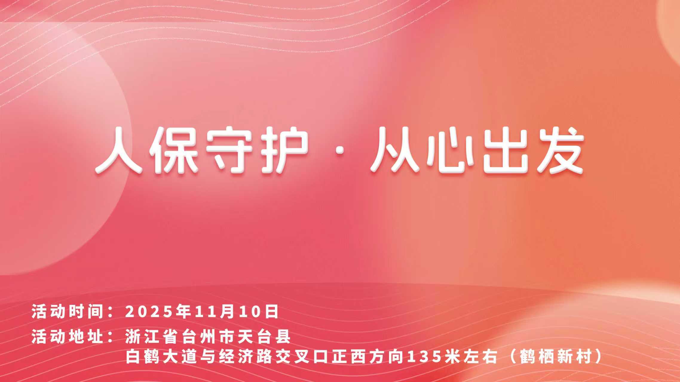 2025年11月10日,中国人民财产保险股份有限公司天台支公司将走进鹤栖新村,开展“人保守护,从心出发”专项活动。活动现场,专业保险顾问将提供一对一免费咨询,详细解读应急保障条款、精准测算保费、针对性推荐服务型保障组合,针对通勤刚需族、经常自驾出差族、新手车主等不同群体定制“保障+服务”专属方案,让您投保更省心、遇事不慌神。