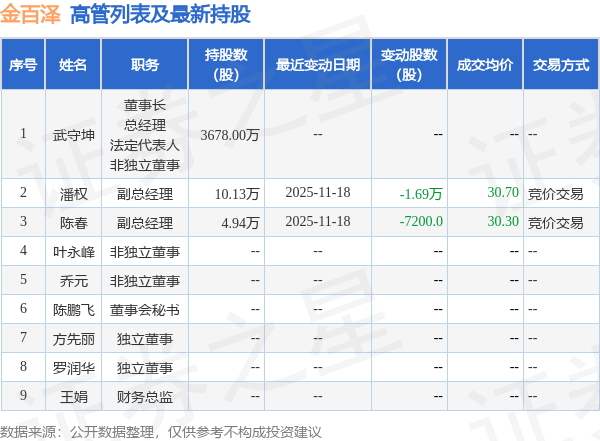 金百泽的高管列表及最新持股情况如下: