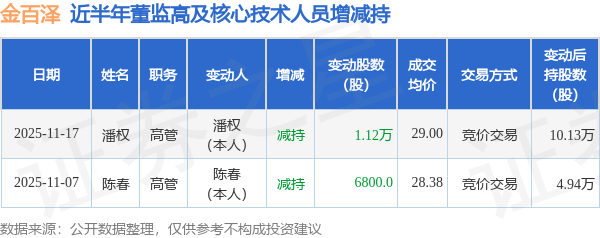金百泽近半年内的董监高及核心技术人员增减持详情如下: