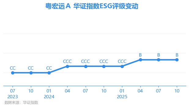 日前,华证指数公布了新一期(2025年10月31日)的ESG评级结果,粤宏远A(000573.SZ)获得B评级(华证指数评级为C起至AAA九档,C为最低档,AAA为其最高一级评级/AA为其第二档),上一期(2025年7月31日)ESG评级为B。本期ESG评级在102家房地产管理和开发行业A股上市公司中排名第70(上一期排名第66)。