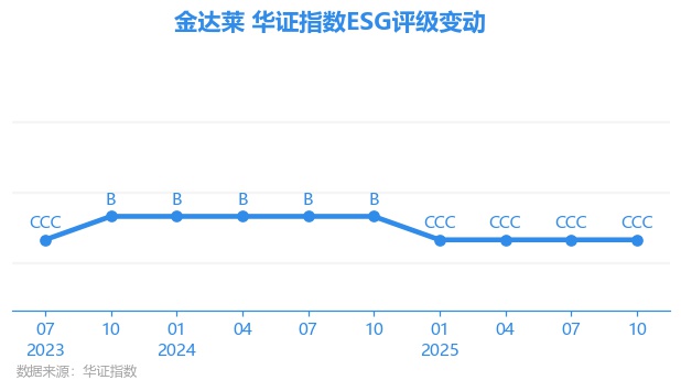 日前,华证指数公布了新一期(2025年10月31日)的ESG评级结果,金达莱(688057.SH)获得CCC评级(华证指数评级为C起至AAA九档,C为最低档,AAA为其最高一级评级/AA为其第二档),上一期(2025年7月31日)ESG评级为CCC。本期ESG评级在161家商业服务与商业用品行业A股上市公司中排名第74(上一期排名第72)。