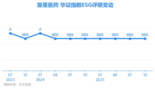 日前,华证指数公布了新一期(2025年10月31日)的ESG评级结果,复星医药(600196.SH)获得BBB评级(华证指数评级为C起至AAA九档,C为最低档,AAA为其最高一级评级/AA为其第二档),上一期(2025年7月31日)ESG评级为BBB。本期ESG评级在266家制药行业A股上市公司中排名第57(上一期排名第58)。