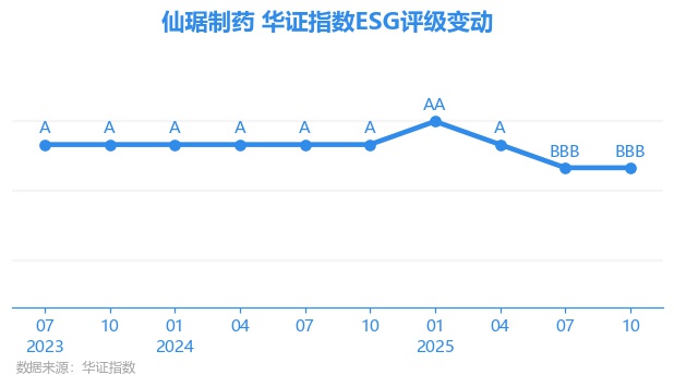 日前,华证指数公布了新一期(2025年10月31日)的ESG评级结果,仙琚制药(002332.SZ)获得BBB评级(华证指数评级为C起至AAA九档,C为最低档,AAA为其最高一级评级/AA为其第二档),上一期(2025年7月31日)ESG评级为BBB。本期ESG评级在266家制药行业A股上市公司中排名第68(上一期排名第63)。