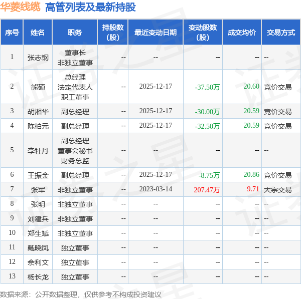 华菱线缆的高管列表及最新持股情况如下: