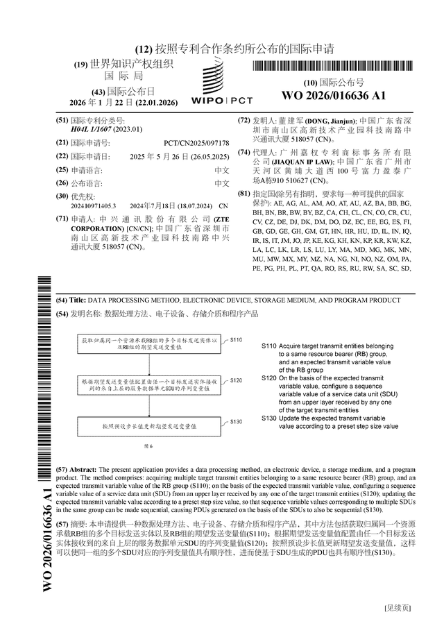 证券之星消息,根据企查查数据显示中兴通讯(000063)公布了一项国际专利申请,专利名为“数据处理方法、电子设备、存储介质和程序产品”,专利申请号为PCT/CN2025/097178,国际公布日为2026年1月22日。